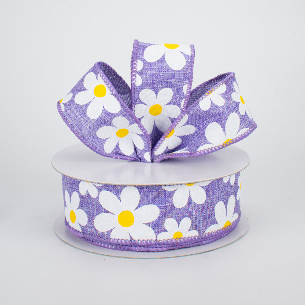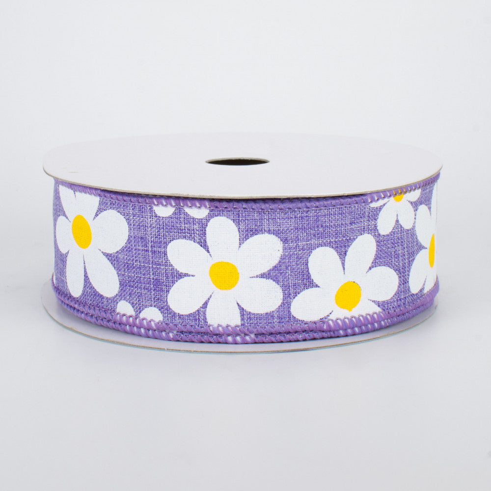 1.5"x10yd Flower Daisy Bold Print On Royal Burlap, Lavender/White/Yellow MA1