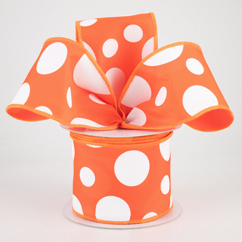 2.5"x10yd Giant Three Size Dots On Fabric, Dark Orange/White MA89