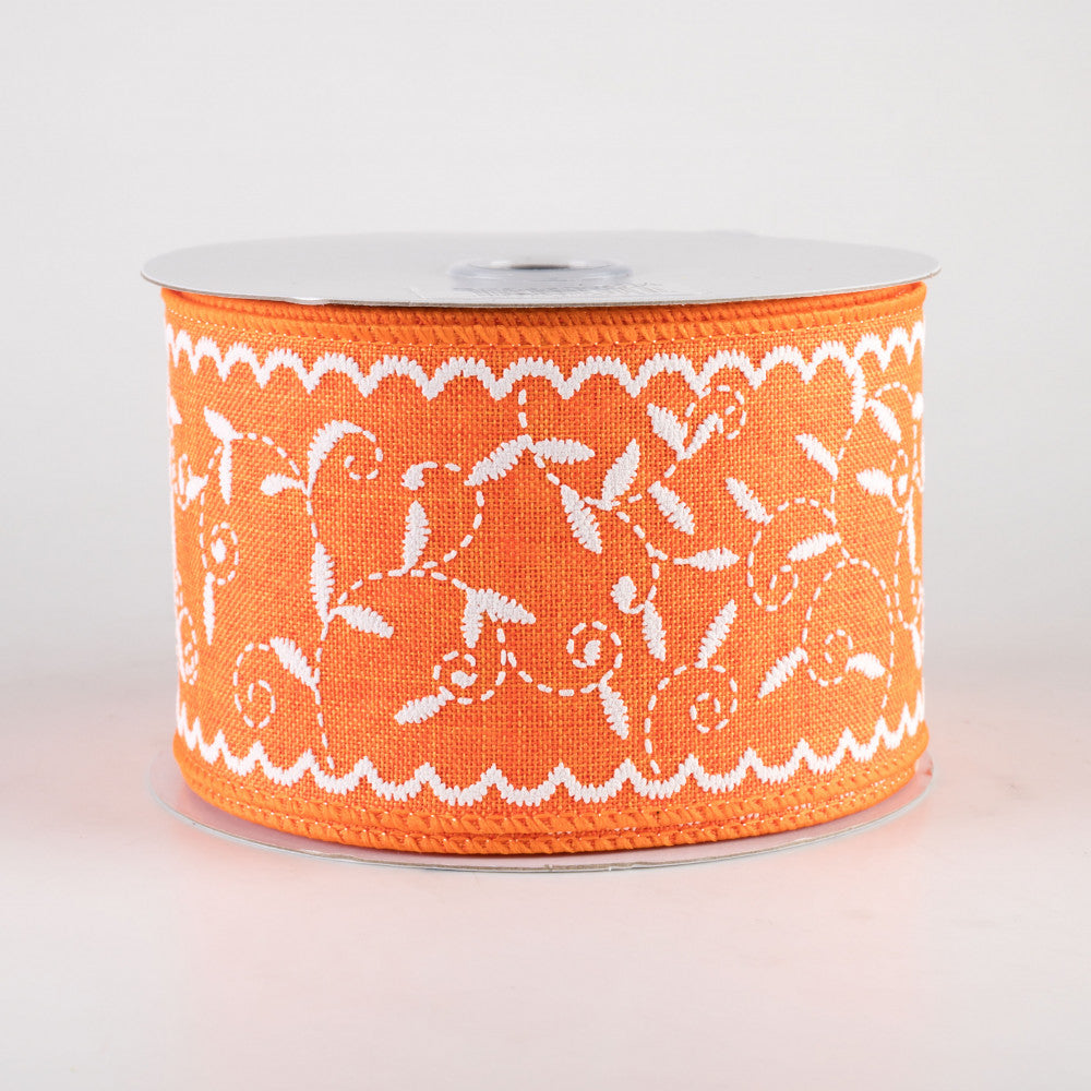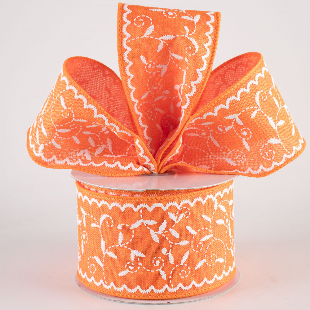 Elevate your crafting projects with the exquisite pattern of mini stitches against a bright orange background on our 2.5"x10yd Mini Stitch On Royal Burlap ribbon. Our ribbon is designed with a sewn wired edge for a reliable, long-lasting design. Perfect for adding decorative touches to spring wreaths and other projects! Combine it with other ribbon and accessories.